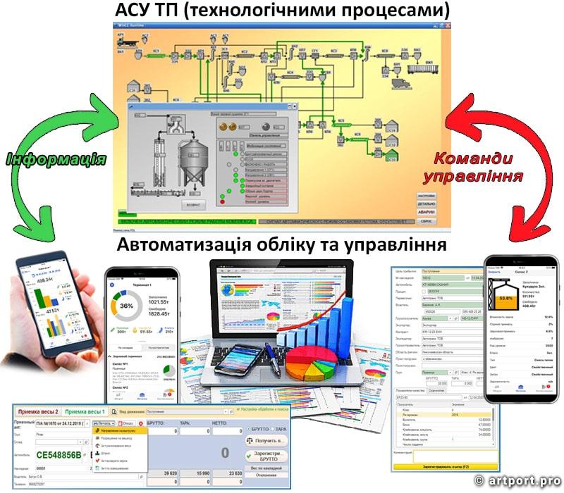1. Автоматизація технологічних процесів (АСУ ТП): системи, що керують безпосередньо виробництвом (сушарки, норії, вентиляція). (У цій статті ми лише згадаємо цей напрям, зосереджуючись на управлінській автоматизації).