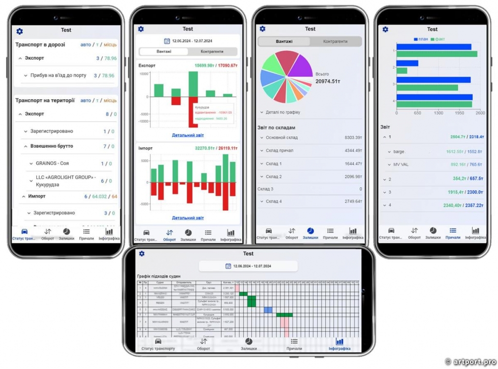 • Контролювати відвантаження (для терміналів): Оперативно бачити динаміку відвантаження на судно, розуміючи, скільки зерна чекає, розвантажується, і скільки залишилося завантажити. Це дозволяє уникнути «столпотворіння» на причалі або простою навантаження, забезпечуючи ритмічність роботи.