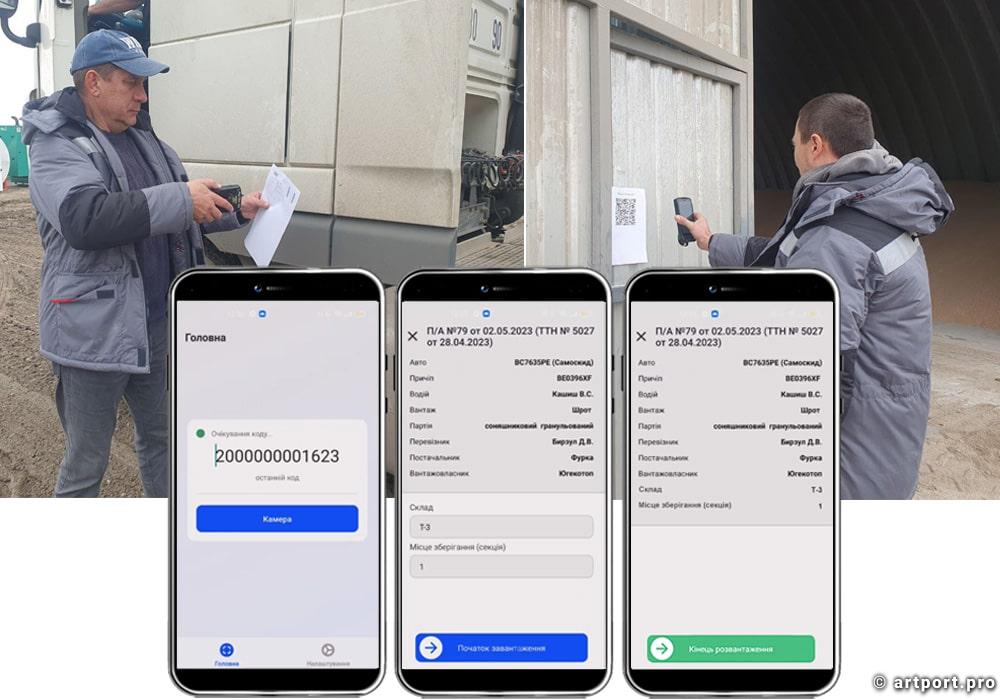 • Цифровий ключ для водія: Процес починається під час подання заявки на перевезення через кабінети водія або постачальника. Водій отримує тайм-слот (час) для заїзду на елеватор, у який його обслужать без тривалого очікування. Під час реєстрації на КПП він отримує унікальний цифровий ідентифікатор — штрих-код або QR-код, отримуючи його прямо в кабінеті водія на мобільному телефоні або в телеграм-боті. Цей код стає єдиним ключем для обслуговування машини по всьому ланцюжку внутрішньої логістики: від в’їзду до виїзду.